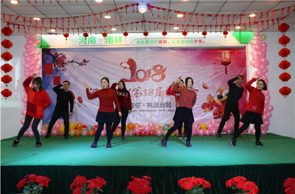 雄鸡高歌辞旧岁,灵犬欢腾报春来。2018年2月3日,全体同仁备战已久的“河南雨林第18届新春联欢会”在公司大舞台如期举行,雨林家人欢聚一堂,一起欢度家庭盛会。本届联欢会以“感恩有你,挑战自我”为主题,对唱、合唱、舞蹈、游戏互动、戏曲等节目形式多种多样,全体同仁积极踊跃参与,精心排练,为大家带来了一场盛大的音乐盛宴。
